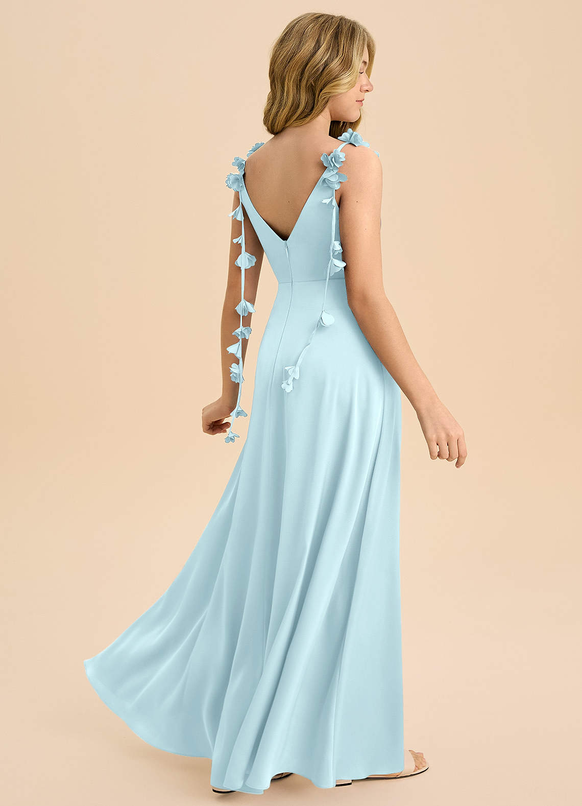Cloud Blue Empire Pleated Stretch Satin Dress