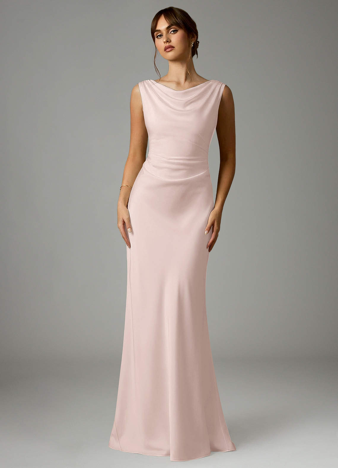 Blushing Pink Mermaid Pleated Stretch Satin Dress