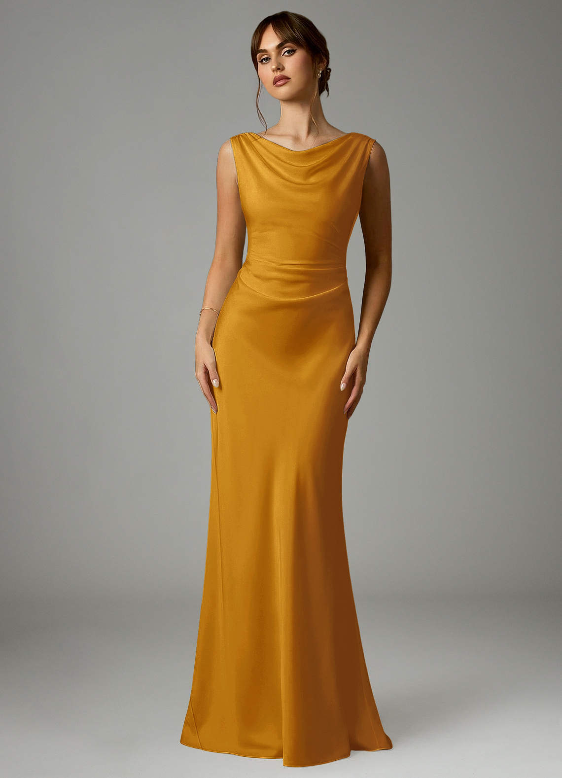 Butterscotch Mermaid Pleated Stretch Satin Dress