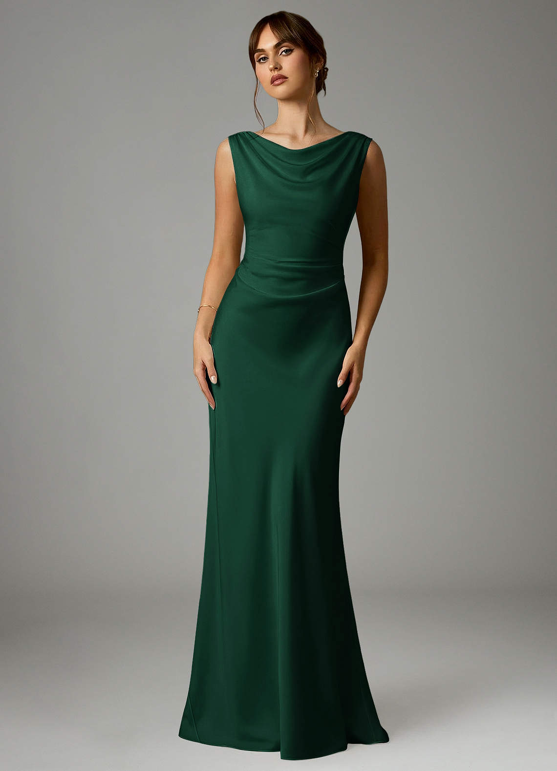 Dark Green Mermaid Pleated Stretch Satin Dress