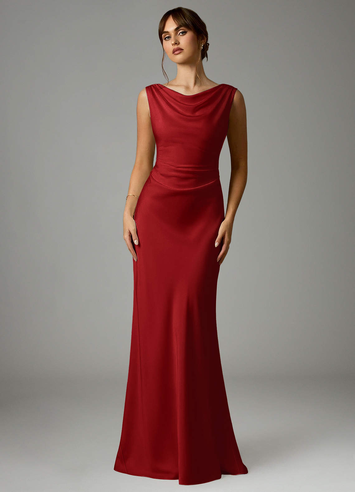 Pomegranate Mermaid Pleated Stretch Satin Dress