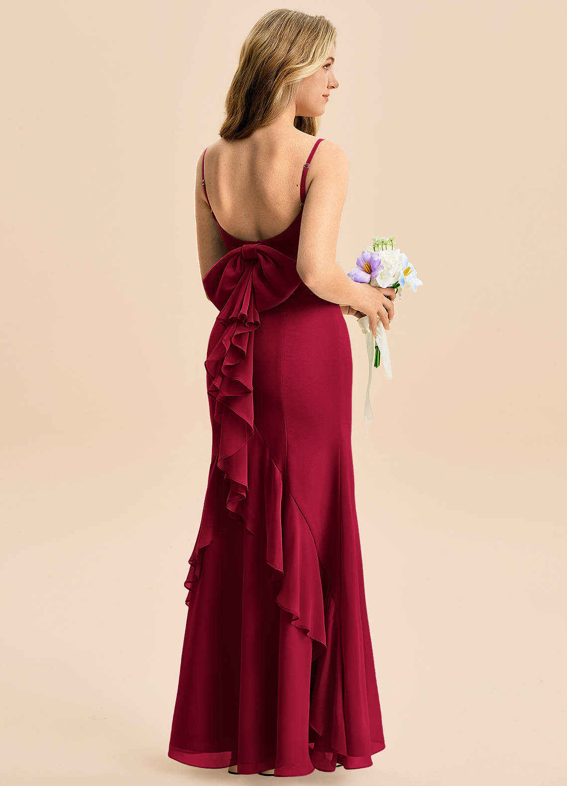Burgundy Mermaid Bow Chiffon Dress