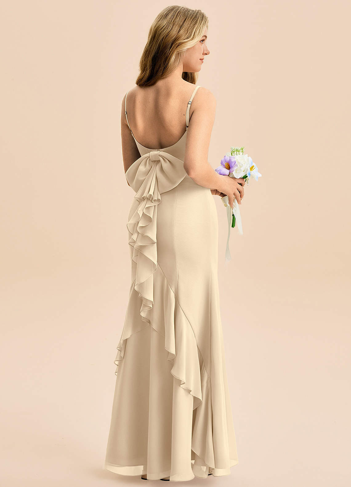 Champagne Mermaid Bow Chiffon Dress