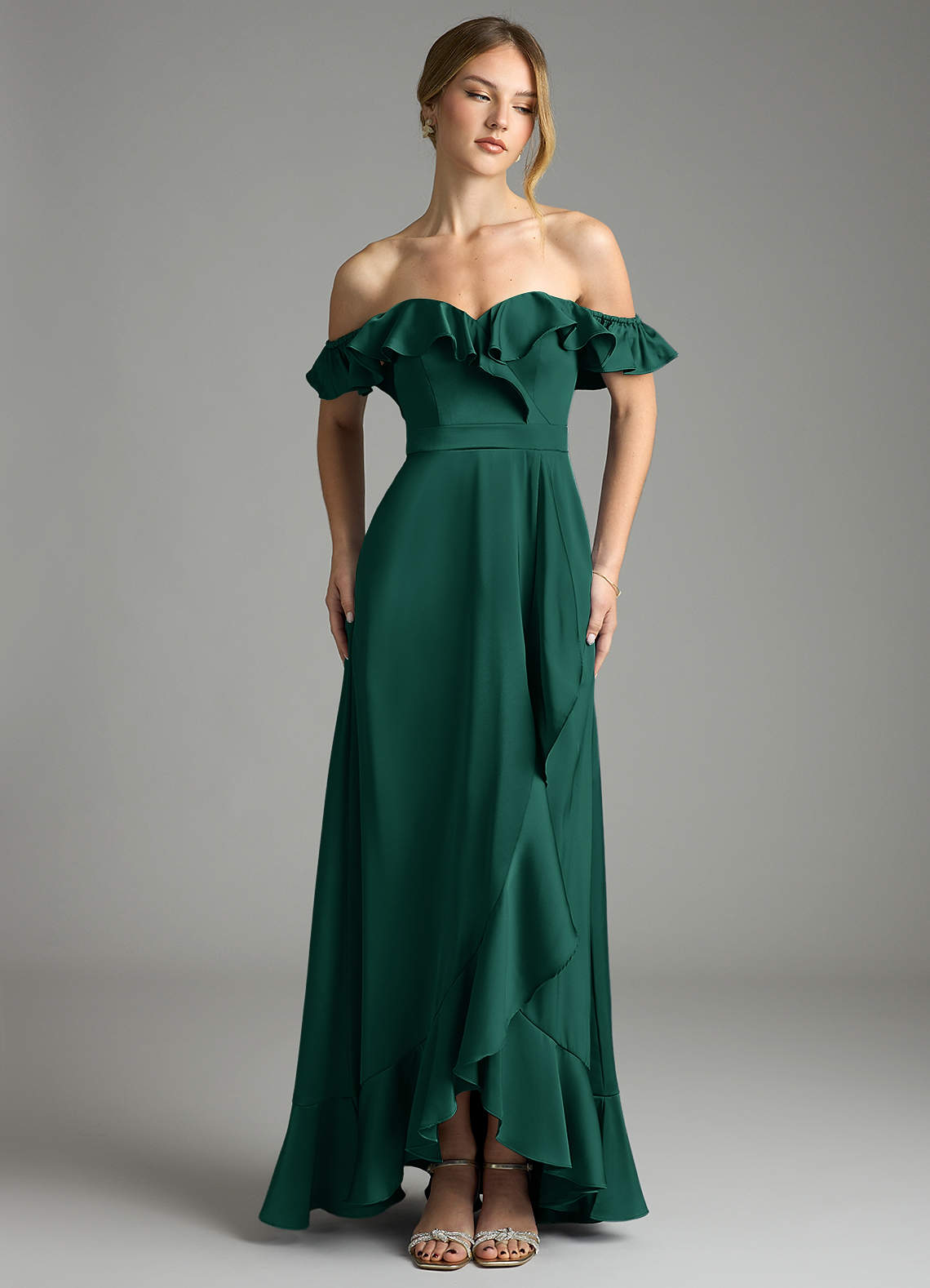 Emerald A-Line Off the Shoulder Stretch Satin Convertible Dress