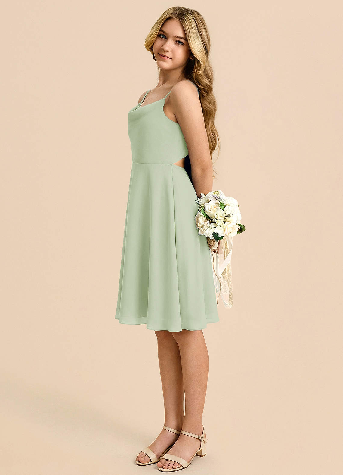 Dusty Sage A-Line Bow Chiffon Dress