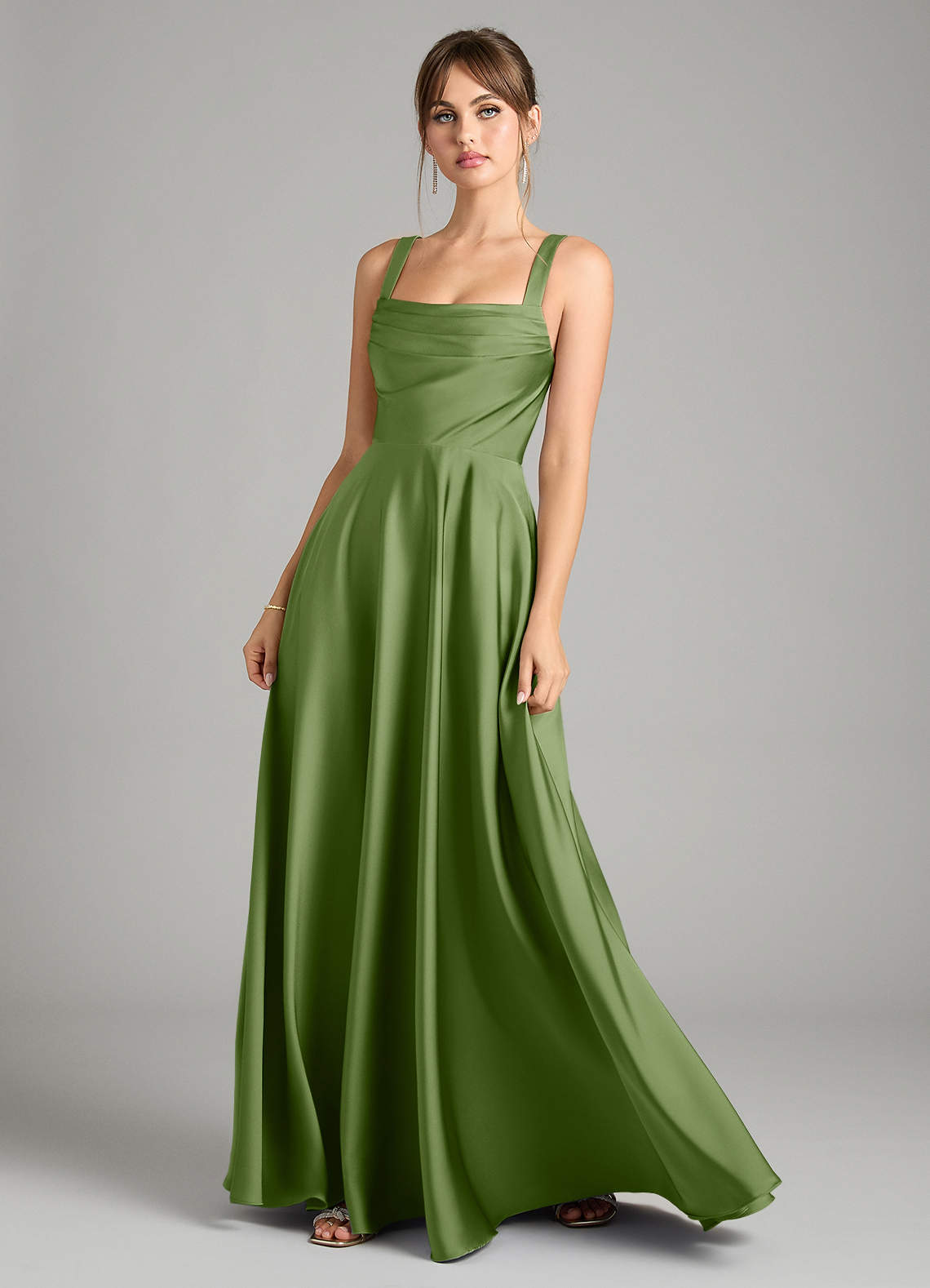 Juniper A-Line Pleated Stretch Satin Dress