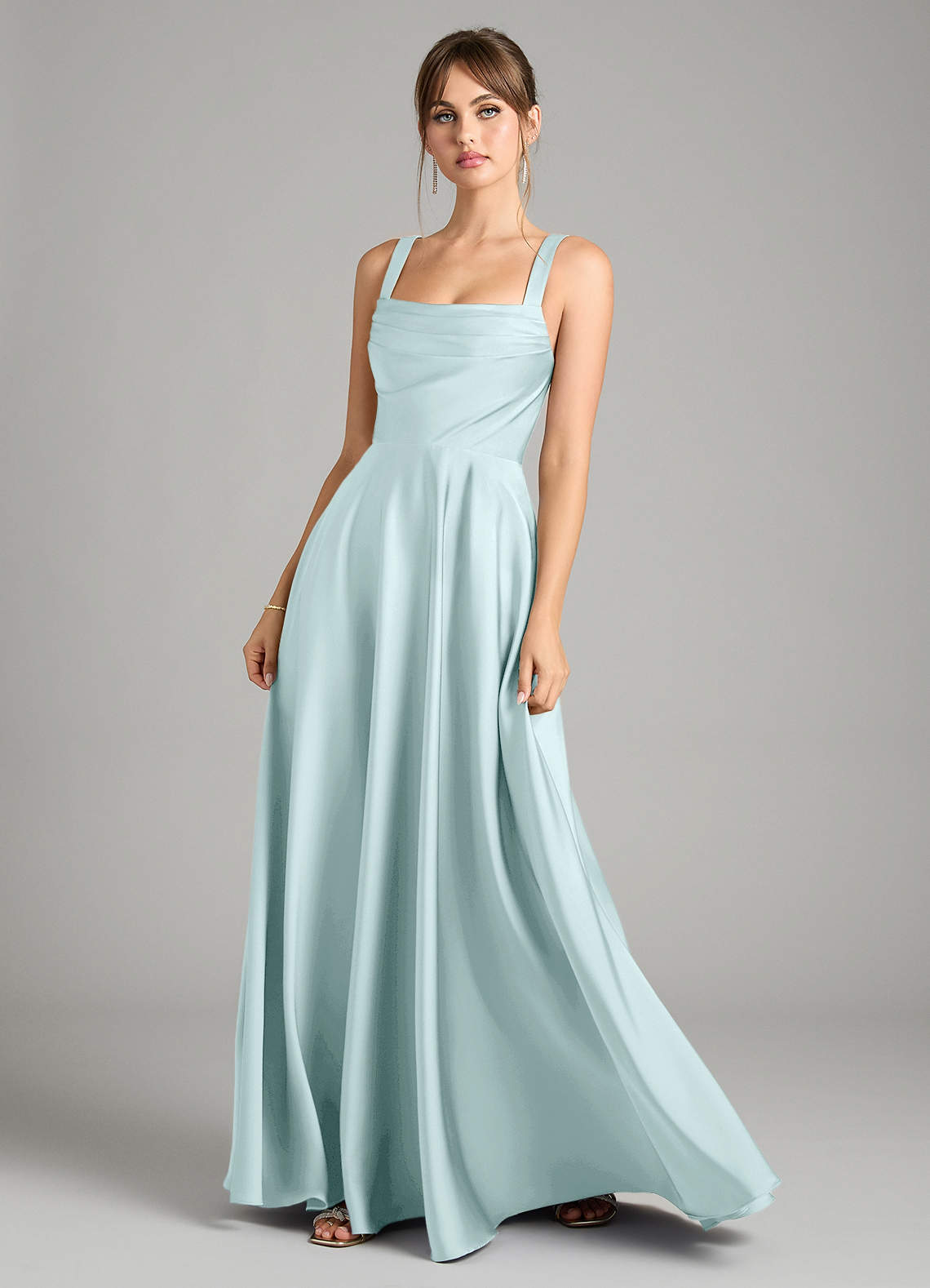 Sea Glass A-Line Pleated Stretch Satin Dress