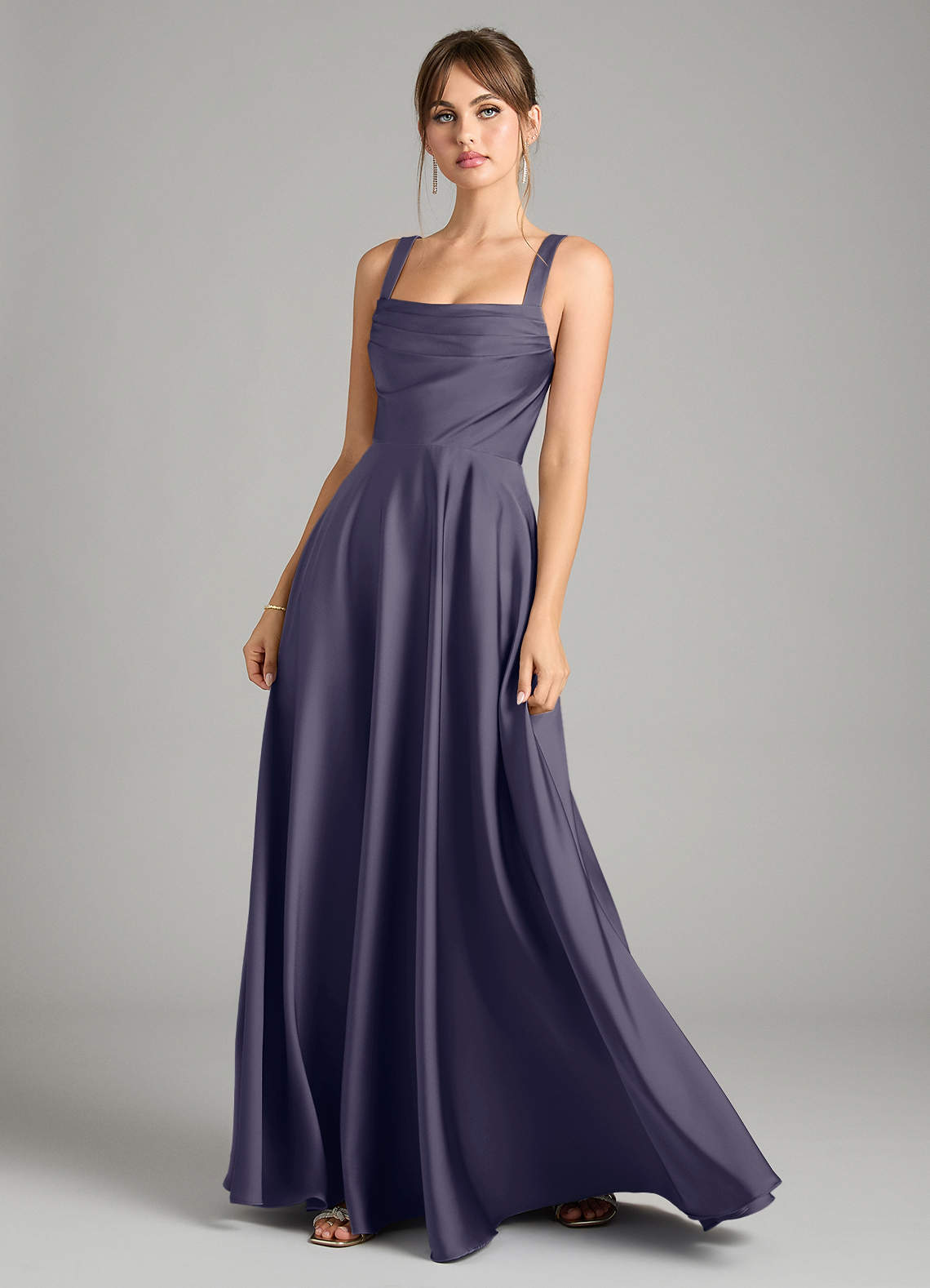 Azazie Shaude Bridesmaid Dresses Stormy A-Line Pleated Stretch Satin Dress image1