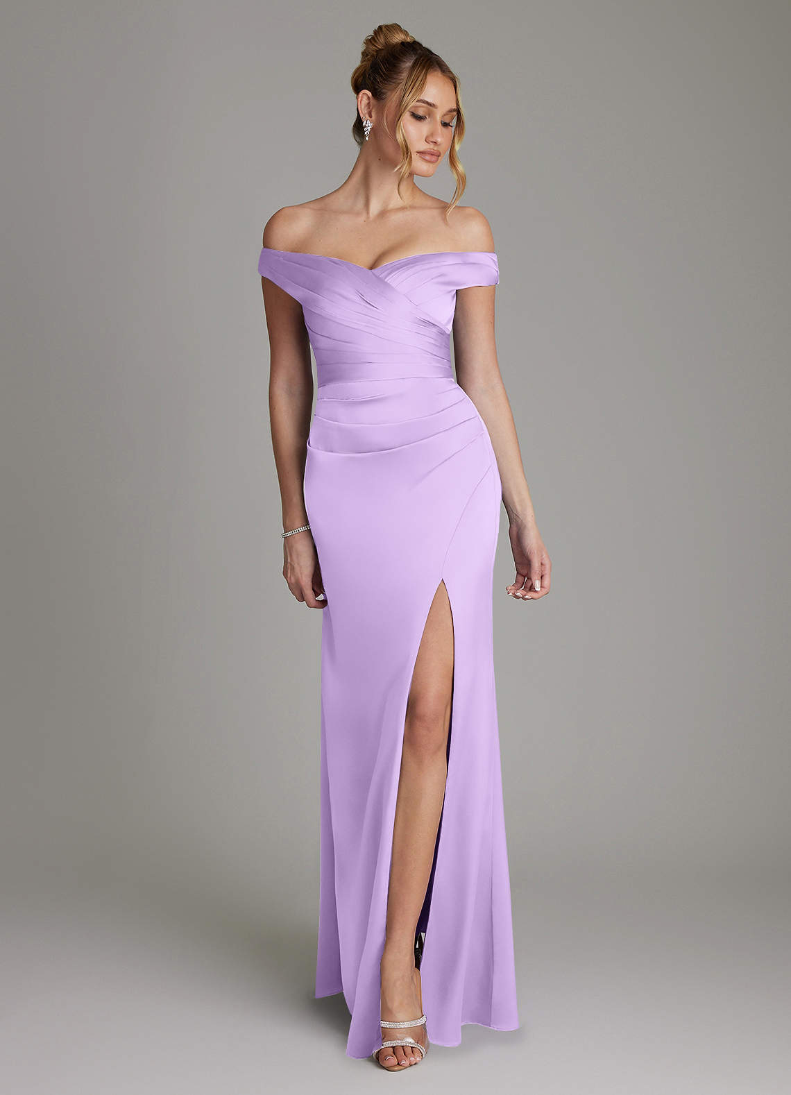 Lilac Sheath Off the Shoulder Stretch Satin Dress
