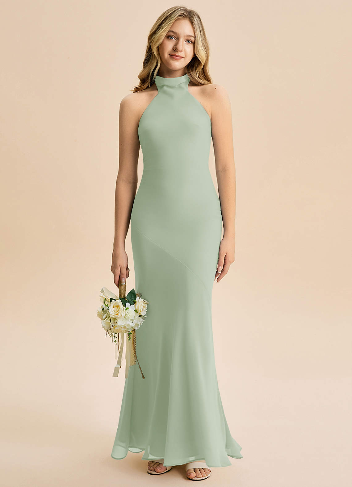 Dusty Sage Mermaid High Neck Chiffon Dress