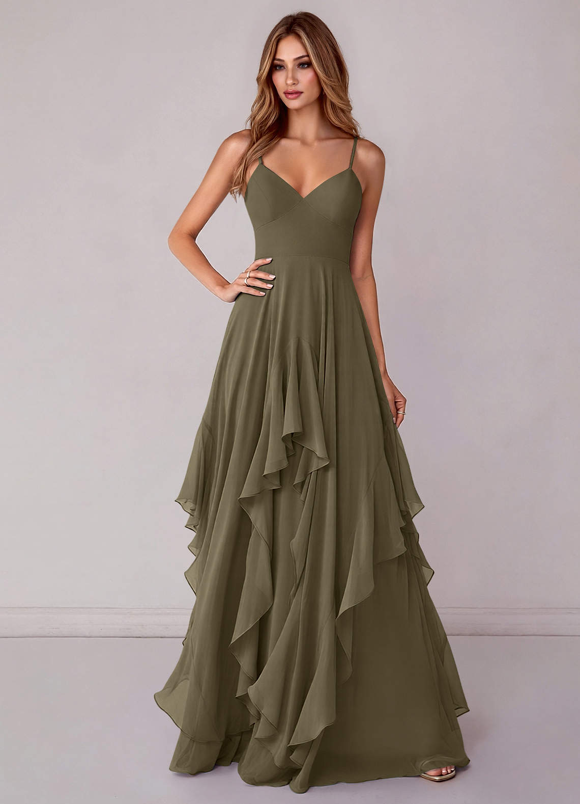 Willow Green A-Line Chiffon Dress