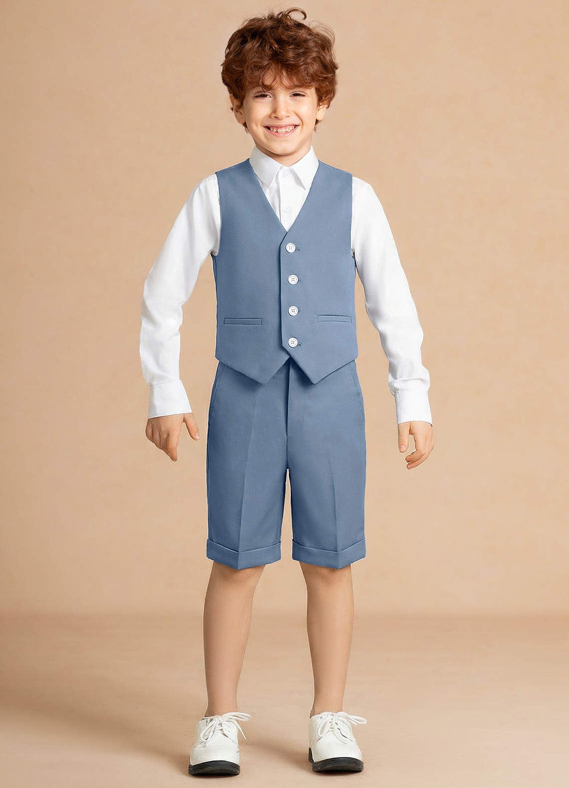 Finn Dusty Blue Boy Vest 3-Piece Short Suit