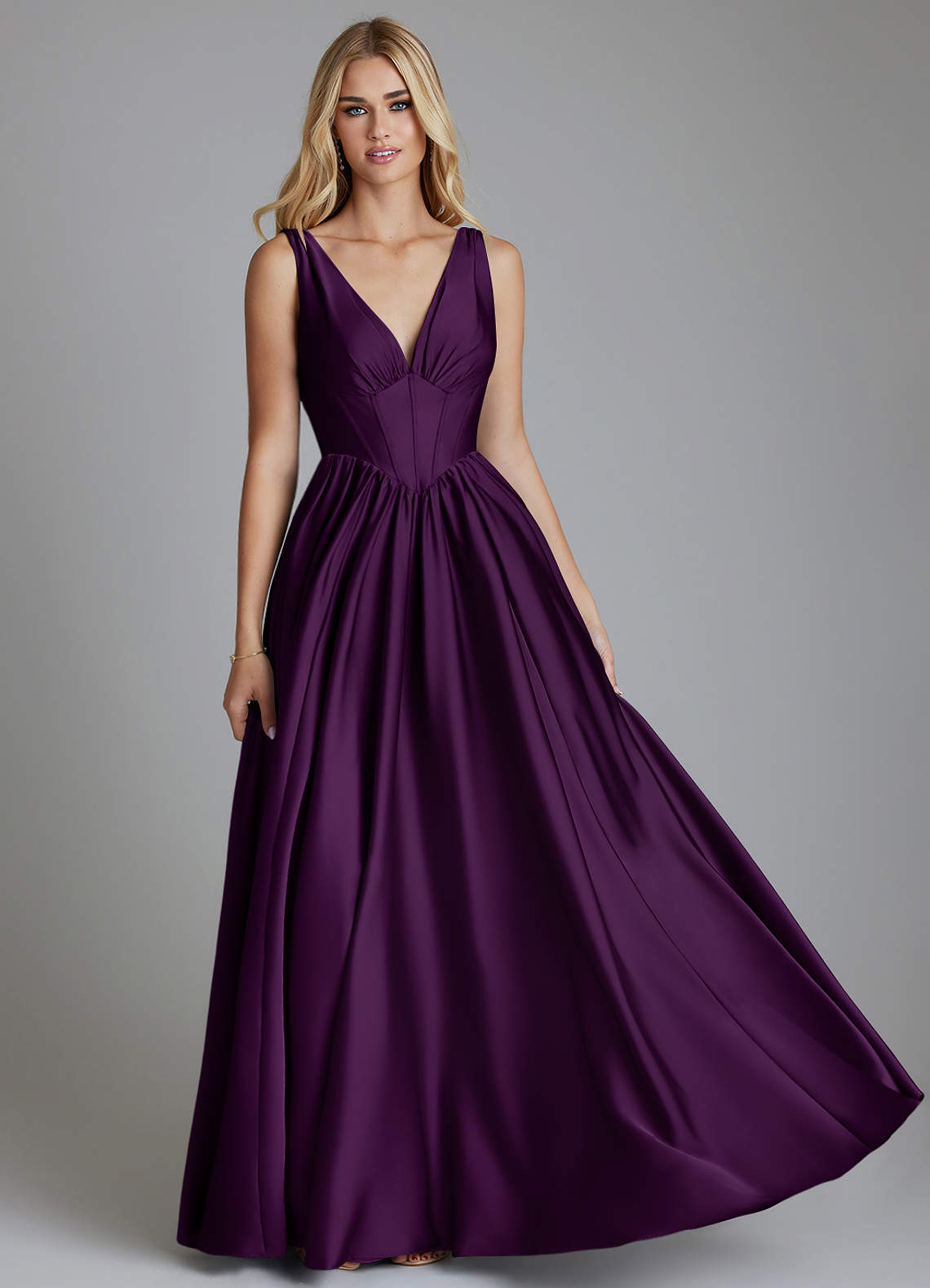 Vestido Uva de Cetim elástico de Linha A com Espartilho