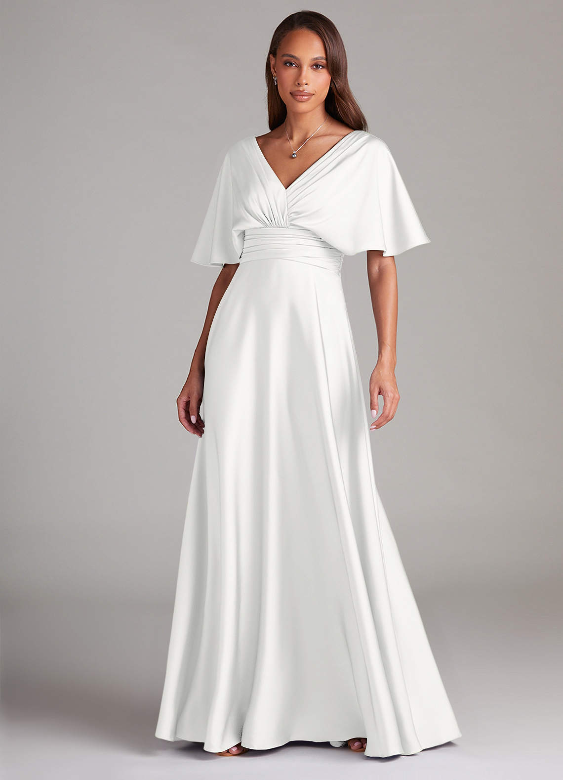 Klä av A-Linje i Stretch Satin Plisserad Vit